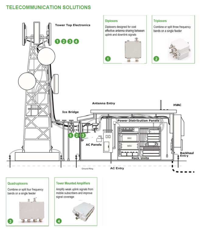 Provide passive components such as power splitters, combiners, attenuators, antennas, etc. for radio communication systems.